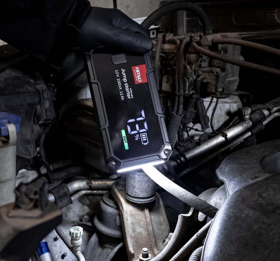 Moderní a výkonné zařízení, které kombinuje funkci startovacího boosteru, powerbanky a LED baterky.
