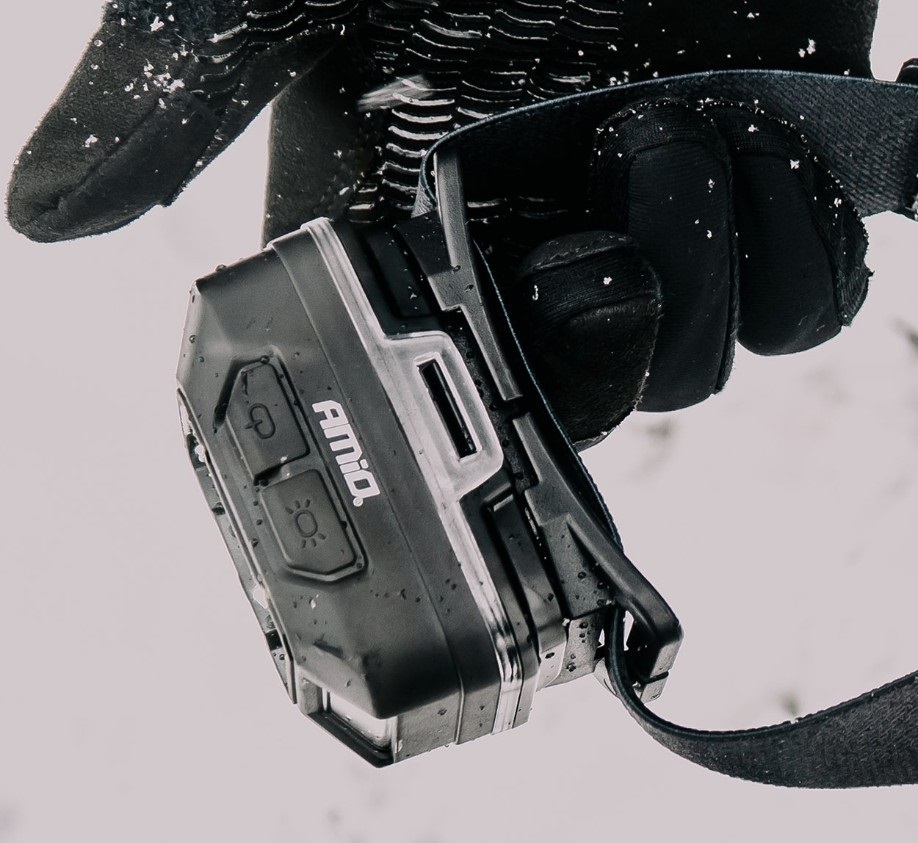 Čelovka se ovládá pomocí dvou horních tlačítek, která umožňují výběr režimů svícení.