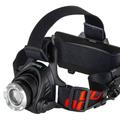Odolná a funkční čelovka, vyrobená z pevné hliníkové slitiny, vybavena výkonnou LED diodou T6 a funkcí přiblížení umožňující nastavit šířku a dosah paprsku.