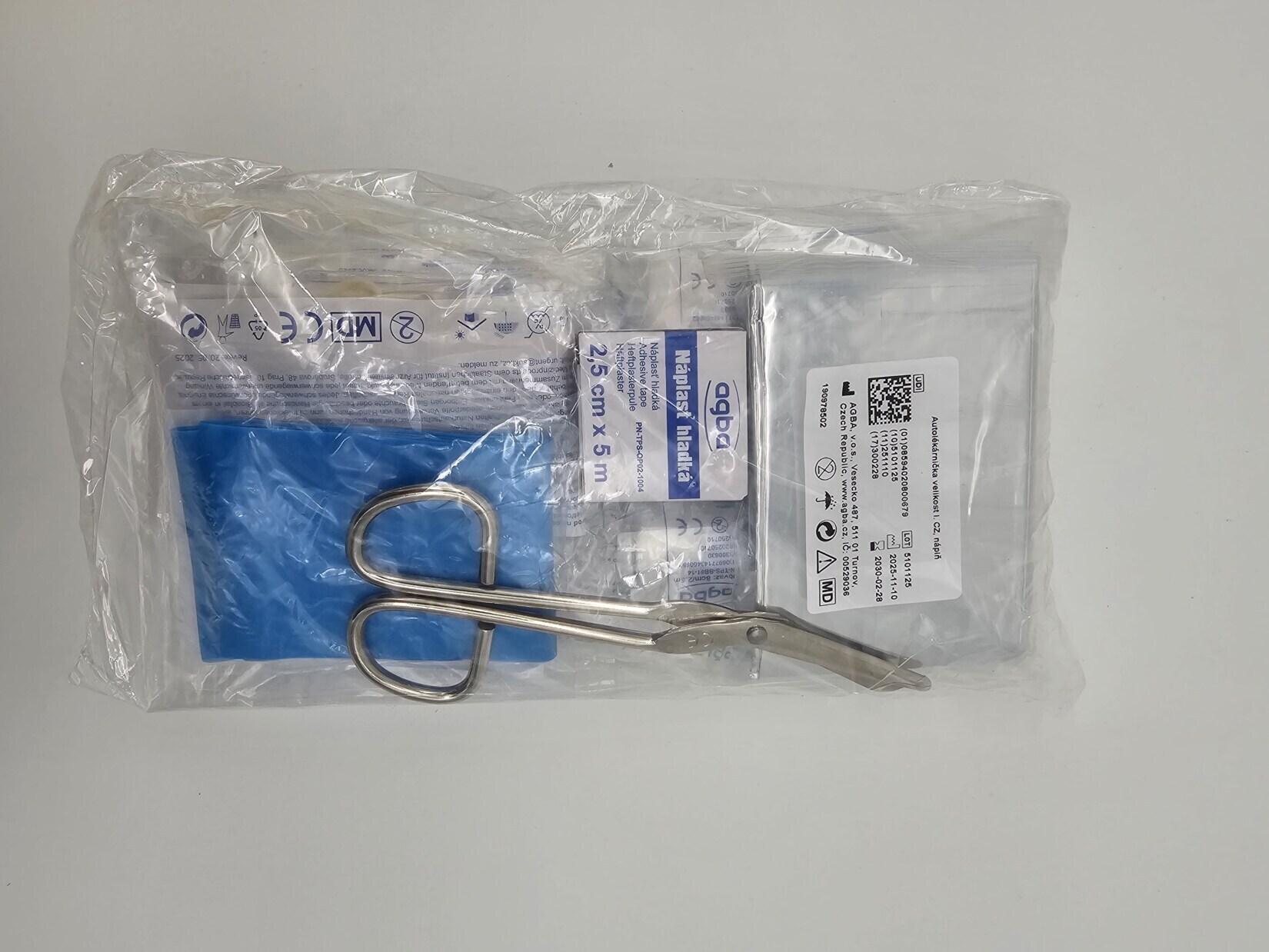 Složení autolékárnička odpovídá platné vyhlášce 153/2023 Sb. MD a nařízení MDR 2017/745