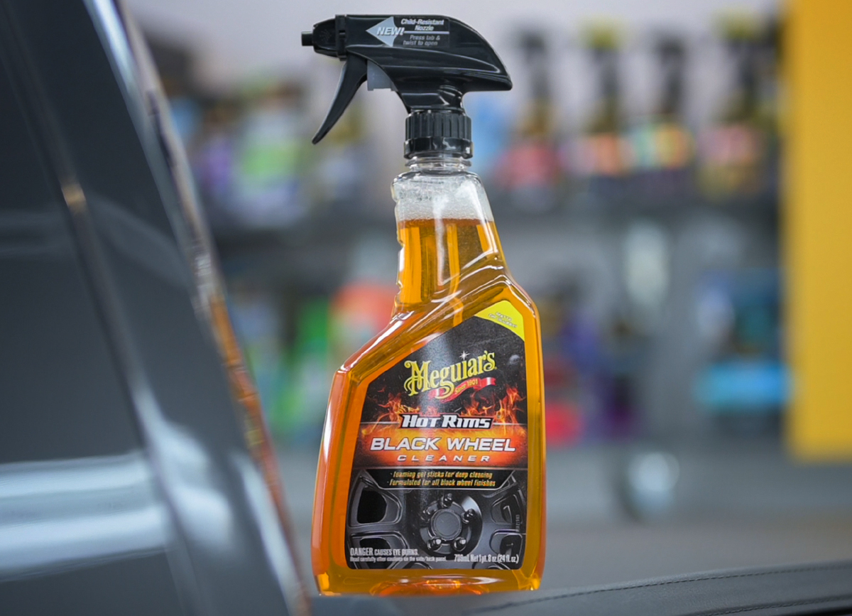 Meguiar's Hot Rims Black Wheel Cleaner odstraňuje běžné silniční nečistoty, odolnější skvrny i brzdový prach rychle a